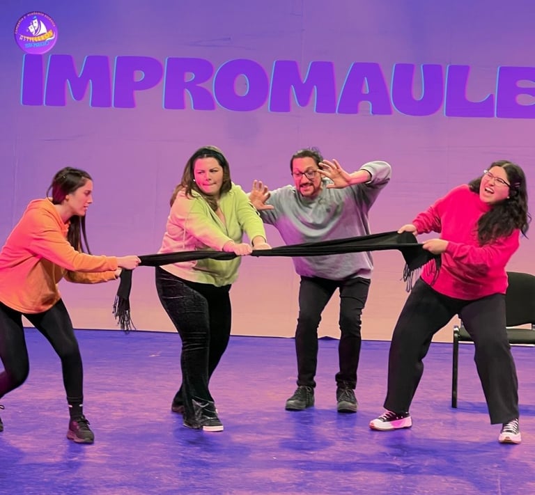 Un Match de Improvisación Teatral es un espectáculo único, dinámico y lleno de humor en el que dos equipos de actores y actrices se enfrentan en un escenario convertido en cancha de juego. Bajo la mirada de un árbitro —que propone las reglas, temas y condiciones de cada improvisación—, los equipos deben crear escenas en el momento, sin guion previo, desplegando creatividad, rapidez mental y complicidad con el público.