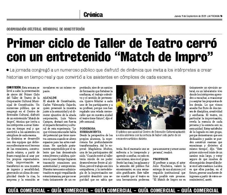 Con un formato que mezcla lo teatral y lo deportivo, el Match de Impro logra una experiencia vibrante donde la risa, la sorpresa y la emoción mantienen a los espectadores en vilo. Más que una obra, es un juego escénico colectivo, donde la imaginación es la protagonista.